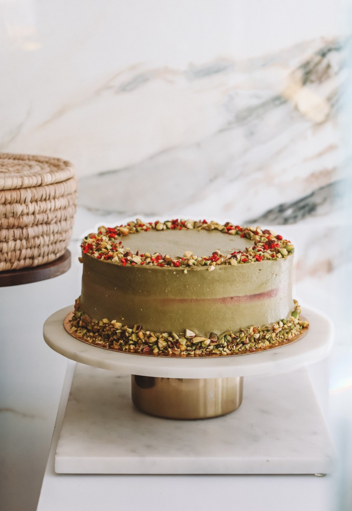 Pisztácia-málna torta