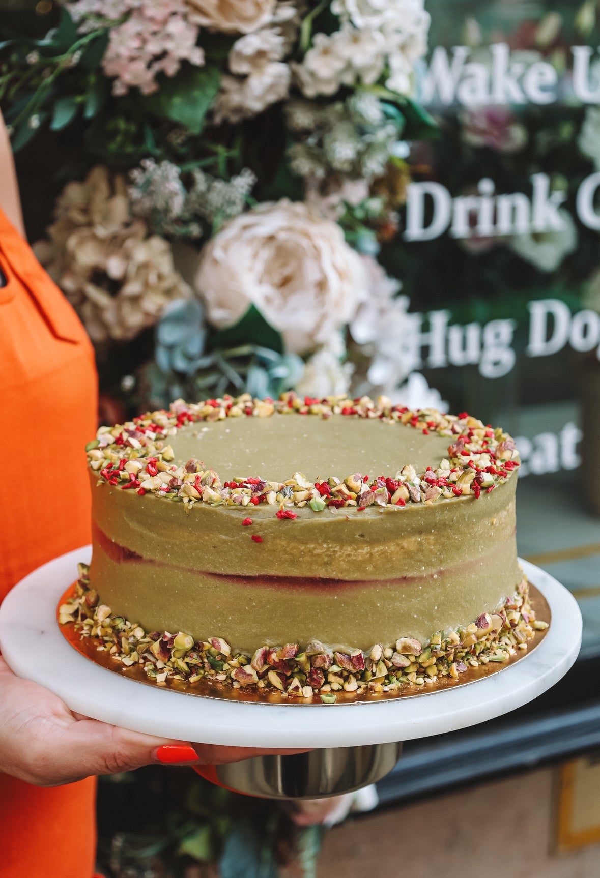Egy igazi elegáns desszert, ahol a pisztácia krémes, diós ízvilága találkozik a málna friss savanykás üdeségével. A puha piskótalapok között selymes pisztáciakrém és málna réteg váltakozik, a külsejét pedig roppanós pisztácia- és gyümölcsdarabok díszítik.